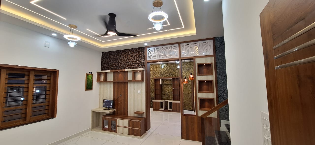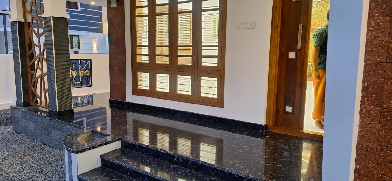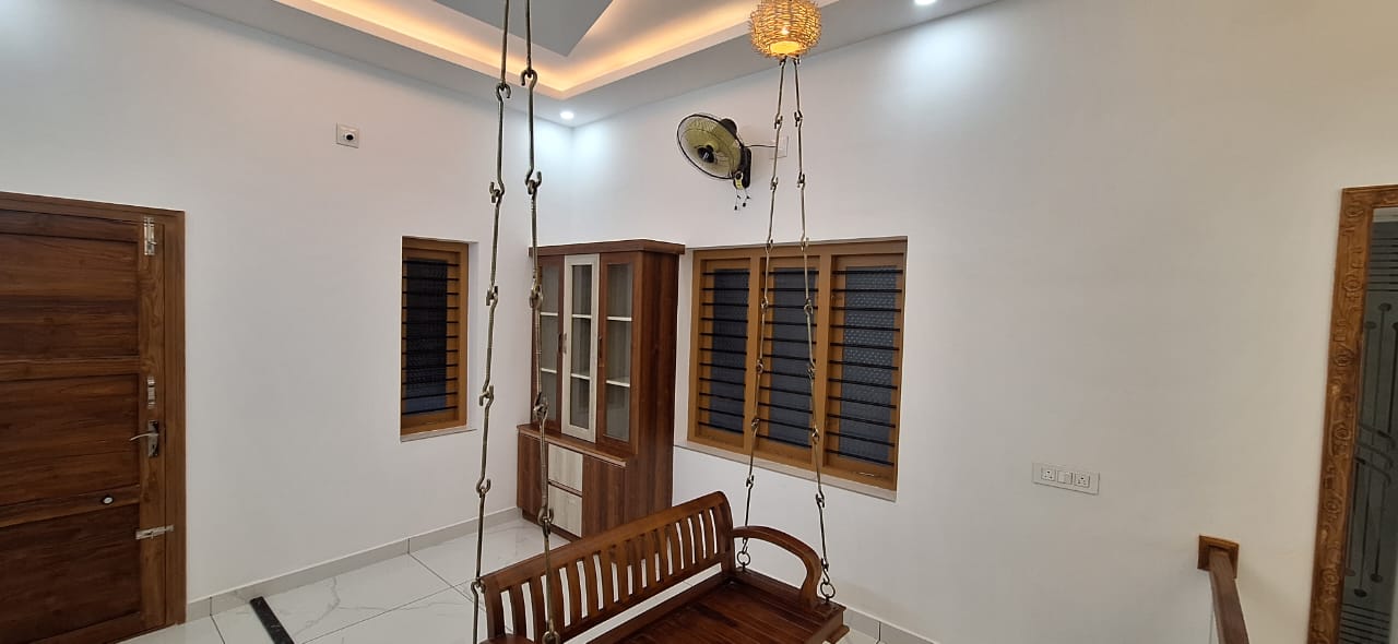 1 common bathroom outside, The House is located in Porsh area of Mannuthy Center, The Land area is 6.25 cent and built up area is 2400 sqft. The house is secured with compound wall and well water and water connection available throughout the year. The House’s cuboard work is completed, Swing facility available, Total price is 1.15 Cr (Negotiable), The serious parties pls may contact on 9447994456 / 9846413666.
